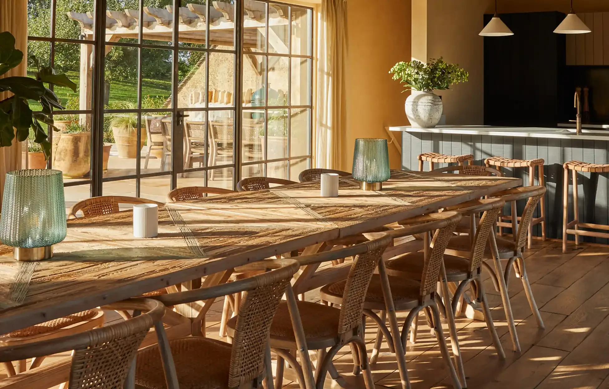 The estate comprises four beautifully restored dwellings, the Farmhouse, Cottage, Stone Barn and Dutch Barn each with its own kitchen, living space and outdoor area. With 10 rooms, each equipped with an en-suite, Latimer Farm offers space and privacy with the opportunity to gather together.